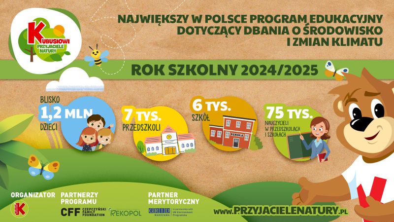 „Kubusiowi Przyjaciele Natury” to największy ogólnopolski program edukacyjny o ekologii skierowany do dzieci w wieku przedszkolnym i wczesnoszkolnym. Organizowany jest przez markę Kubuś we współpracy z ekspertami. Materiały do lekcji dla najmłodszych powstały we współpracy z UNEP/GRID-Warszawa.  W programie wzięło udział już ponad 10 milionów dzieci w całej Polsce. Do tej pory, w bieżącej - 17. edycji bierze udział blisko 1,2 miliona dzieci z 7 tysięcy szkół podstawowych i 6 tysięcy przedszkoli. Uczniowie i przedszkolaki uczestniczą w zajęciach tematycznych, które pomagają im zrozumieć, jak dbać o środowisko, wprowadzają w podstawy ekologii, zachęcają do jedzenia owoców i warzyw oraz pokazują, jakie znaczenie dla zdrowia ma aktywność fizyczna. Zapisy: https://przyjacielenatury.pl/.